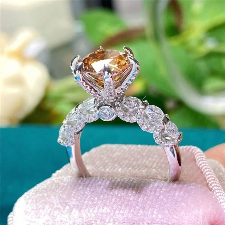1pc Set With 3 Carat Yellow Colored Moissanite Ring Round Yellow Golden Color Temperament S925 Silvery Everyday/ Party, Proposal, Engagement, Wedding, Classic Keepsake, Ideal Gift For Birthdays, Anniversaries, Festive Gifts