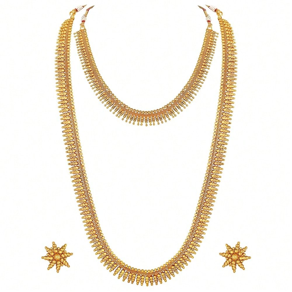 Aheli Gold Plated Choker Long Necklace And Earrings Set Maharani Haar Jewellery Set Gift For Women-1818