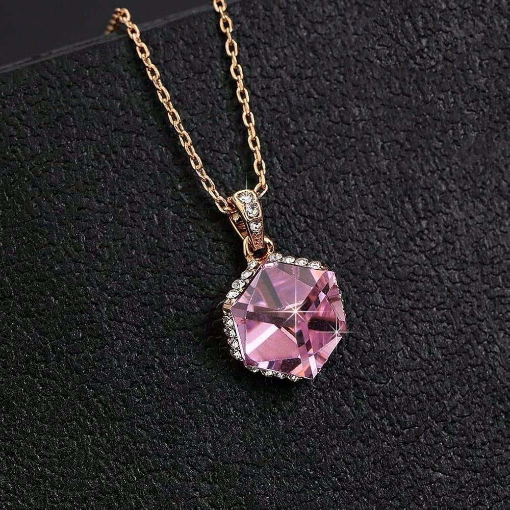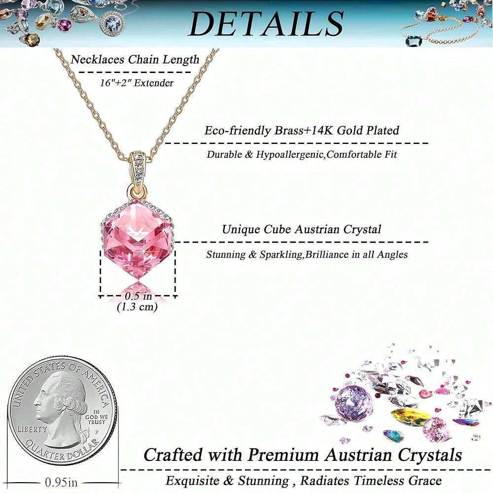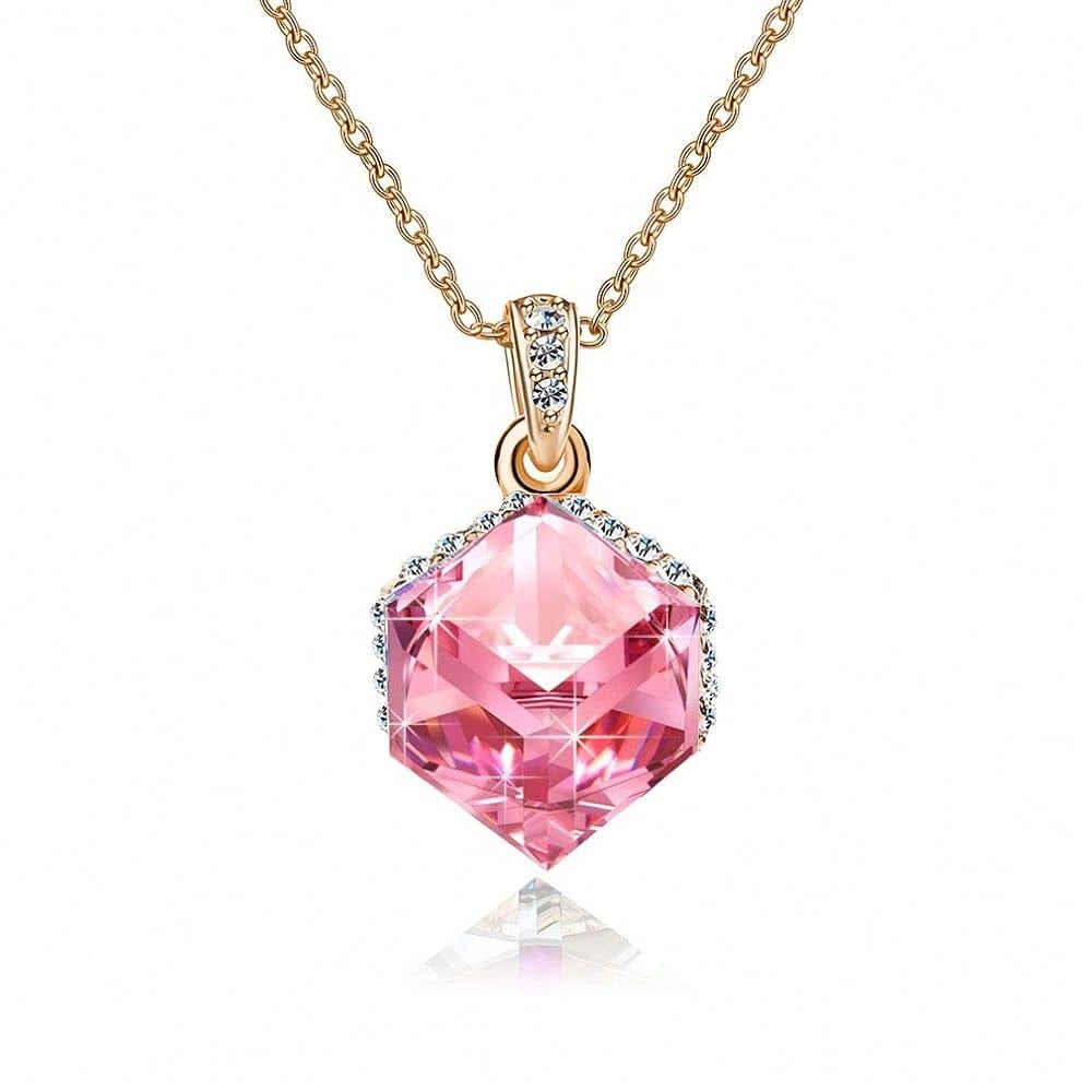 EVEVIC Color Changing Cubic Austrian Crystal Pendant Necklaces For Women 14K Gold Plated Hypoallergenic Jewelry-4056