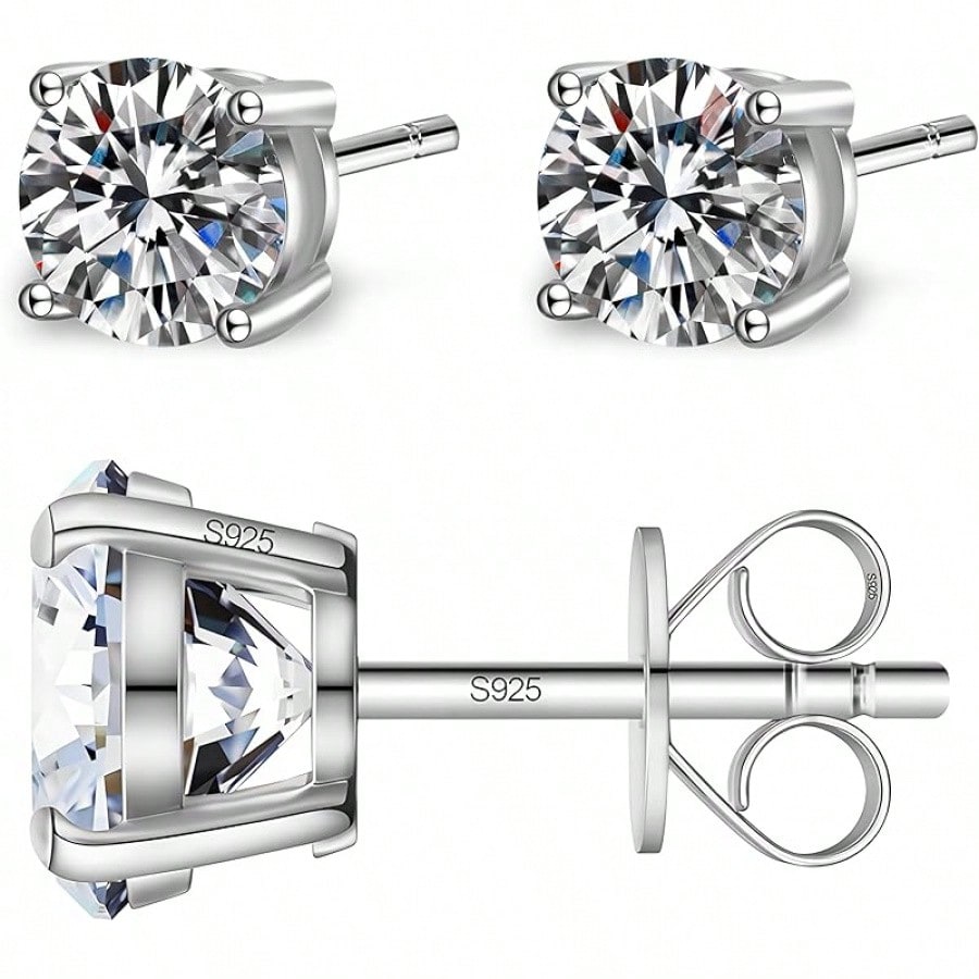 EWAJFBVMoissanite Stud Earrings Women & Men – 1.0 & 1.6 CTW Round Cut, Clarity Lab-Created – 925 Sterling Silver With White Gold Plating – Hypoallergenic, GRA Certified