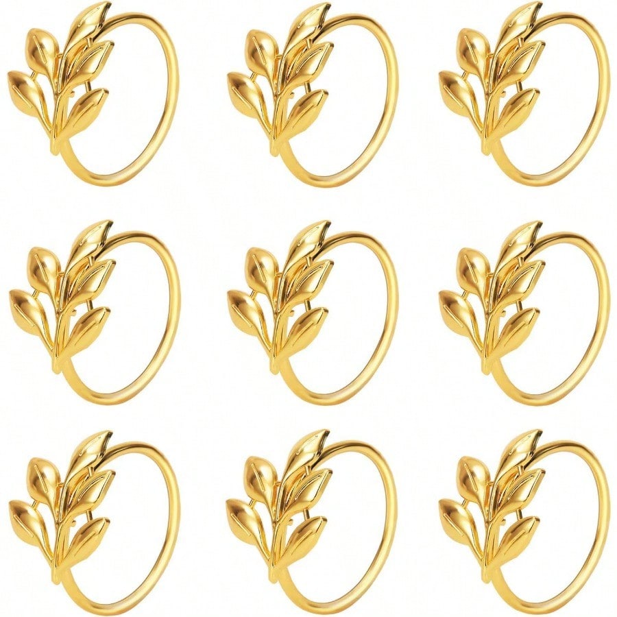 KPOSIYA Set Of 100 Leaf Napkin Rings Metal Gold Napkin Holder Table Napkin Rings For Thanksgiving Day Christmas Dinning Table Parties Everyday Ye ZiGold 100