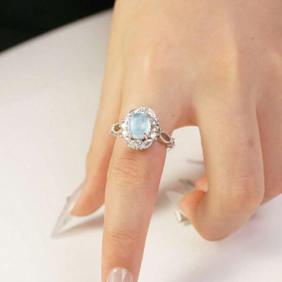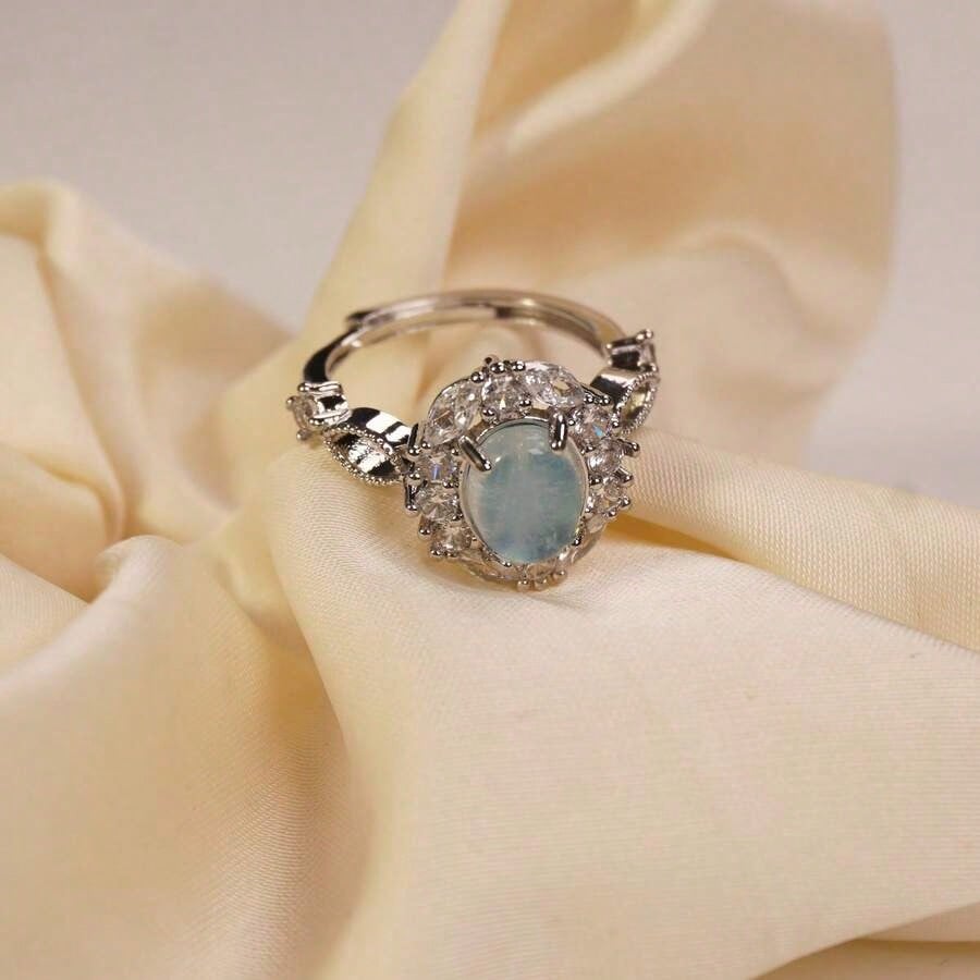Light Blue Gemstone Ring Women's Open Adjustable Ring Suitable Daily Wear And Giving