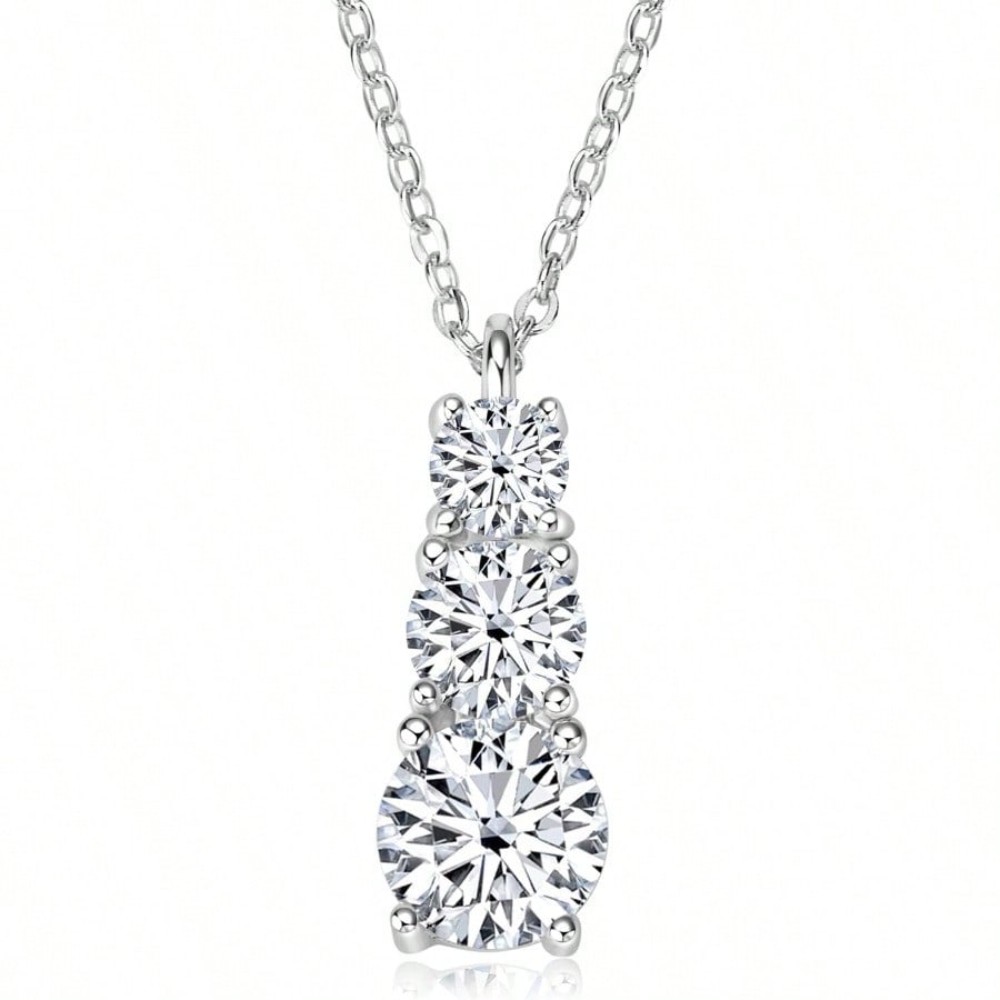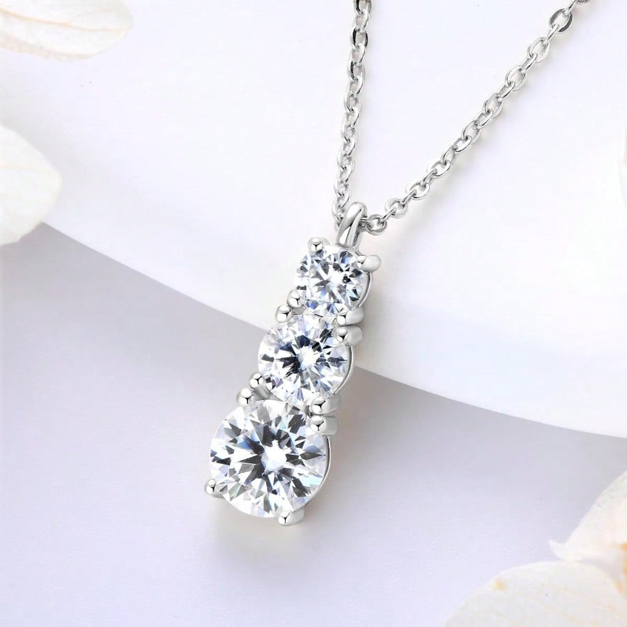 RK--Moissanite Pendant Necklace 925 Sterling Silver Necklaces For Women 3 Stone Pendant 18 To 20 Inch Jewelry Gifts