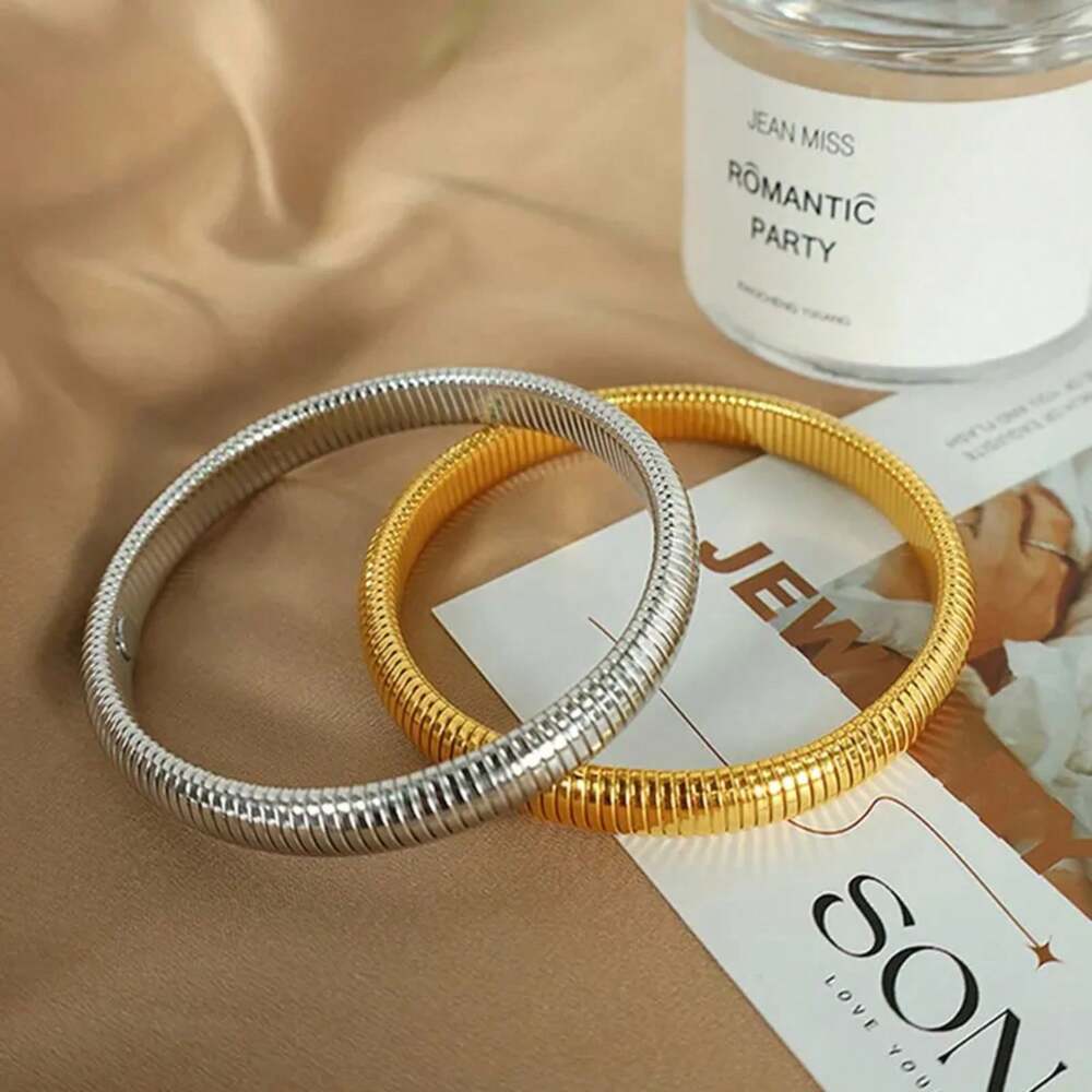 Waterproof Stainless Steel Retro Elasticity Thick Metal Polish Bracelet 18K Gold Plated Fashion Unisex Jewelry Men Women
